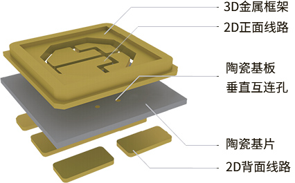 薄膜電路陶瓷封裝基板是一種通過(guò)磁控濺射薄膜金屬化與電鍍制程的技術(shù):即根據(jù)應(yīng)用需要,在高導(dǎo)熱的陶瓷基體上,采用薄膜金屬化及影像轉(zhuǎn)移方式制作2D金屬線路,然后采用TCV(Through Ceramic Via) 技術(shù)形成雙面布線間的垂直互連,最后采用堆疊技術(shù)獲得與陶瓷基體結(jié)合緊密的一體式3D金屬框架。基于薄膜電路工藝,通過(guò)磁控濺射實(shí)現(xiàn)陶瓷表面金屬化,通過(guò)電鍍實(shí)現(xiàn)銅層和金成的厚度大于10微米以上即DPC(DirectPlateCopper-直接鍍銅基板)。